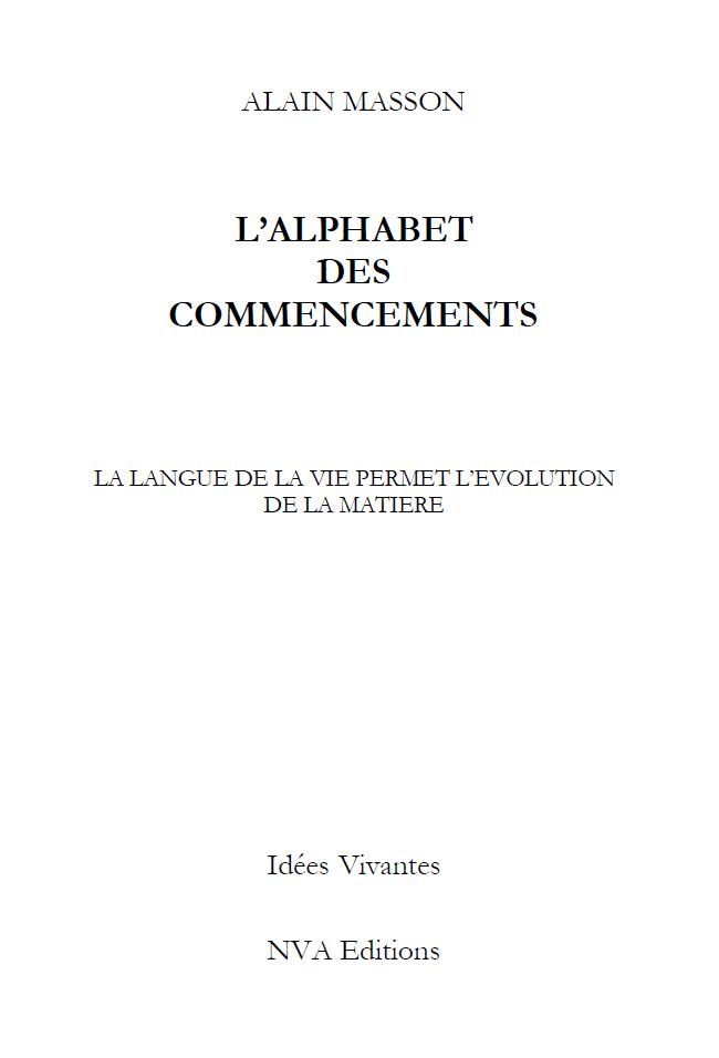 Avec « L’ALPHABET DES COMMENCEMENTS » Alain Masson nous invite à un chemin, à l’écoute de cette science contemporaine qui nous ouvre des portes.